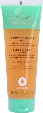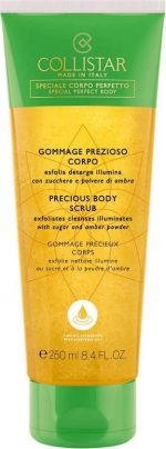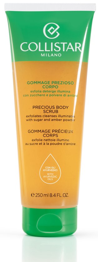 The Precious Body Scrub from Collistar is a mild and cleansing peeling. Collistar’s scrub softens, nourishes and revitalizes the skin thanks to precious oils based on Ayurvedic tradition (sesame, neem and damson oil). Sugar and amber powder exfoliate the skin, while papaya makes the skin glow. The enchanting scent provides a wonderful feeling of well-being.